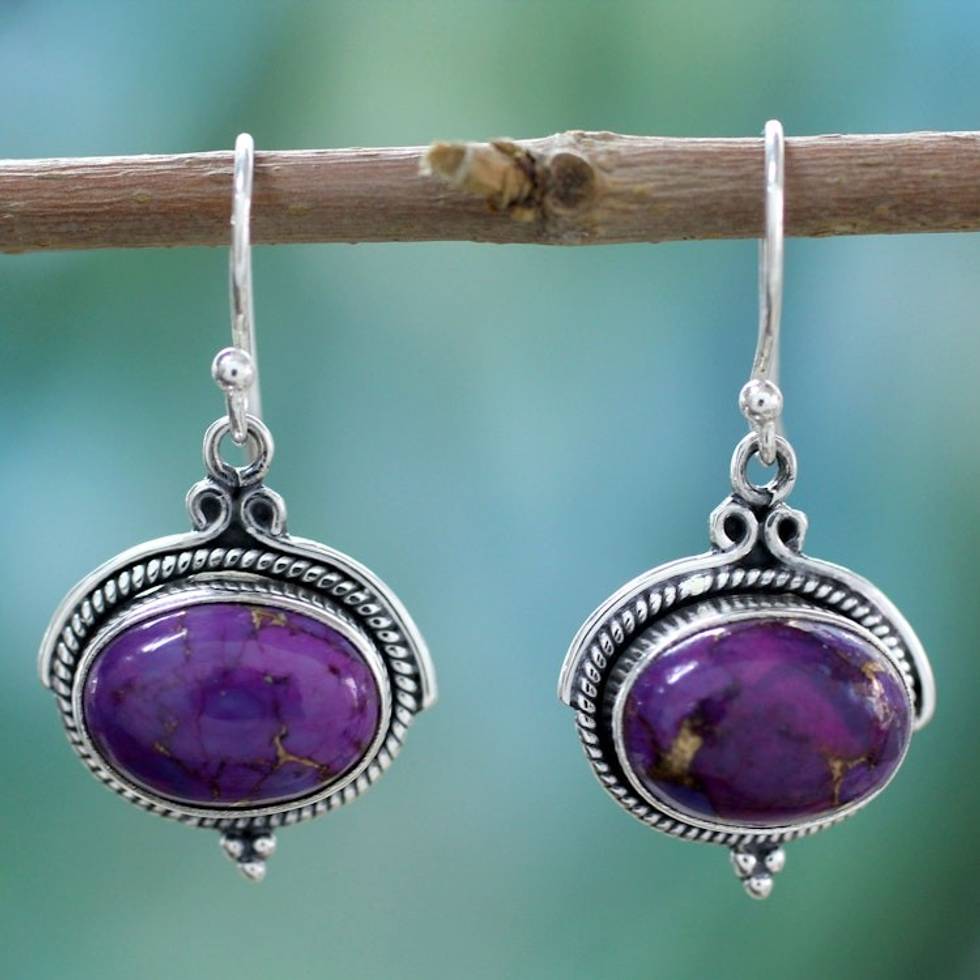 Composite Turquoise and Sterling Silver Earrings 'Royal Purple' Item ID: 2671619343
