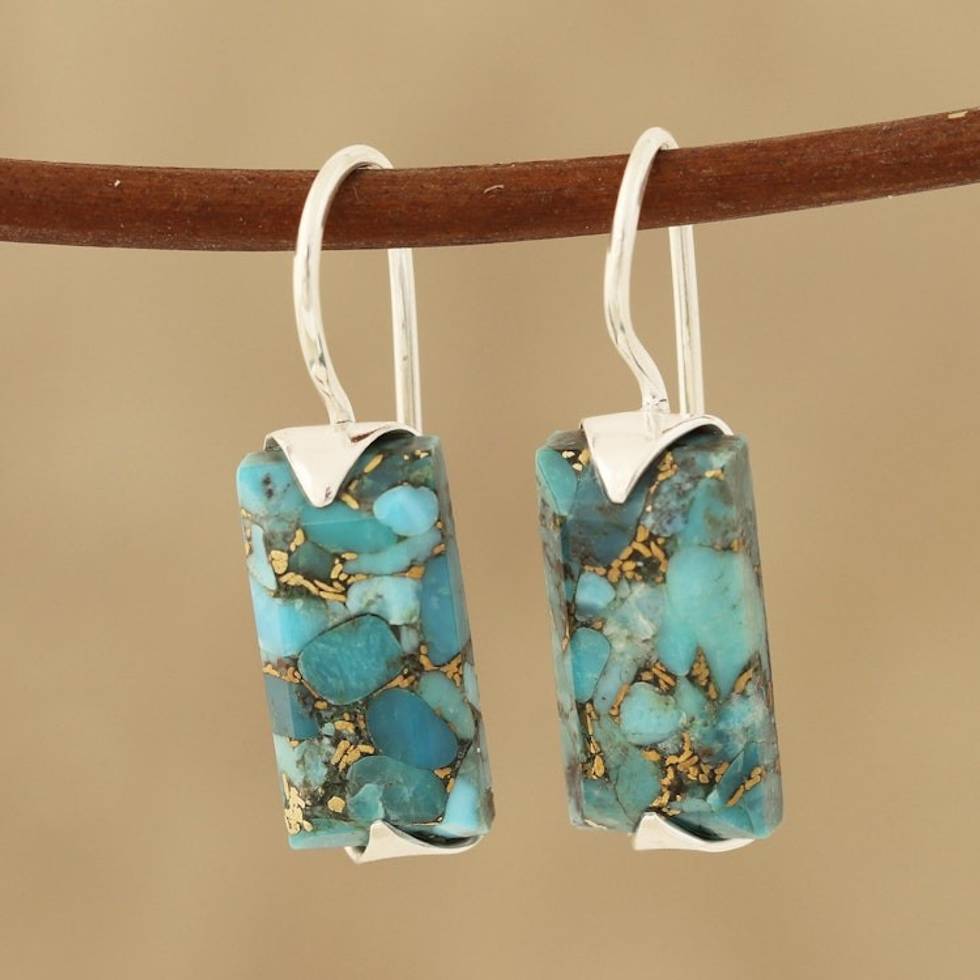 Composite Turquoise Drop Earrings from India 'Beautiful Blue' Item ID: 2669943176