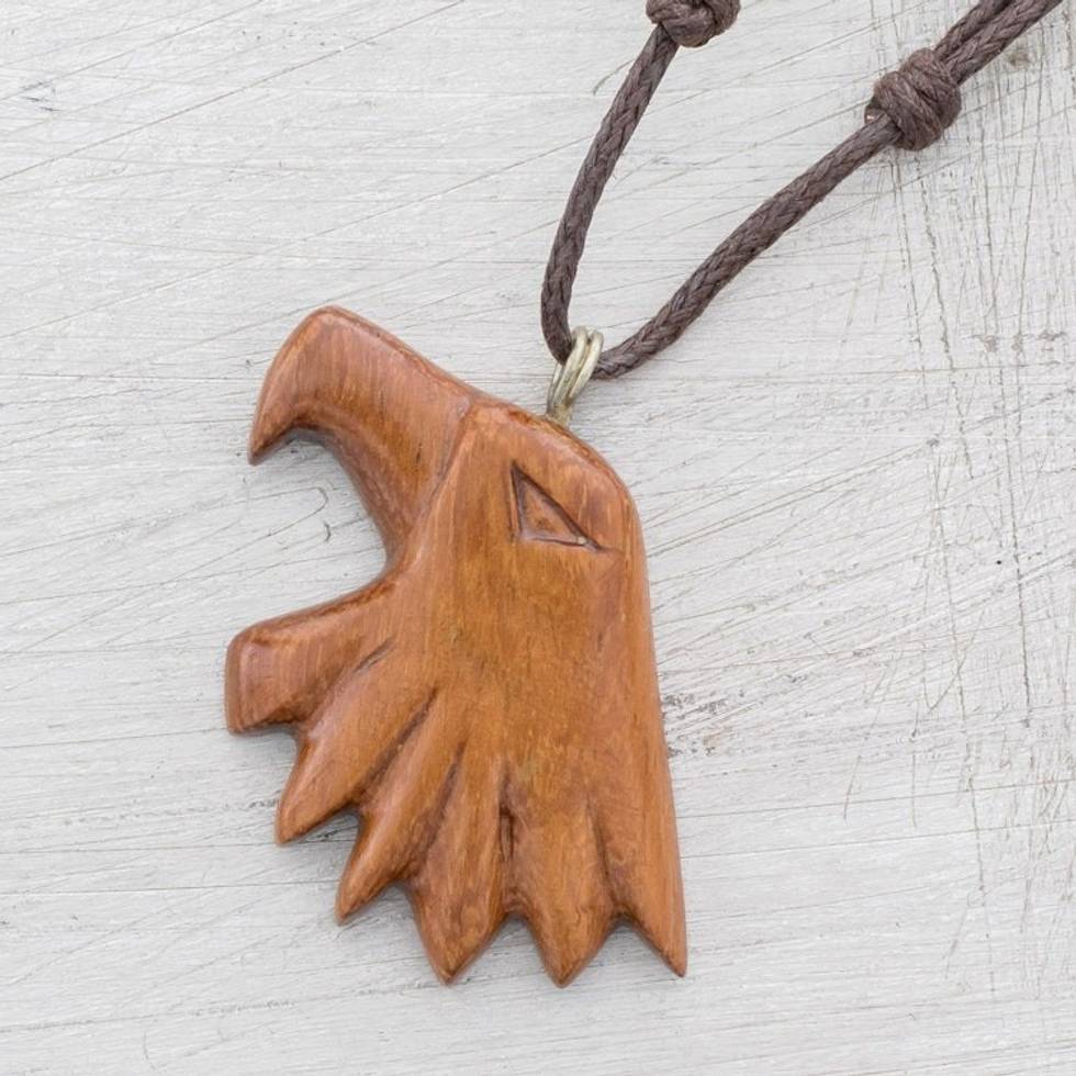 Conacaste Wood Eagle Pendant Necklace from Costa Rica 'Conacaste Bold Eagle' Item ID: 2671776825