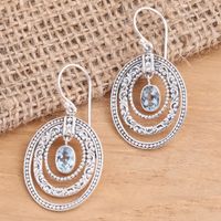 Concentric Circle Blue Topaz Earrings Balinese Motif 'Inner Circles in Blue' Item ID: 2669921295