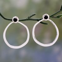Contemporary Drop Earrings in Sterling Silver with Onyx 'Singularity' Item ID: 2671793259