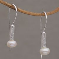 Contemporary Drop Earrings with White Cultured Pearls 'Subtle Finesse' Item ID: 2671734213