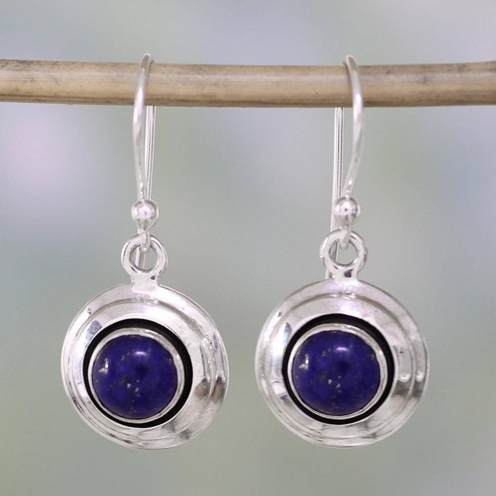 Contemporary Lapis Lazuli and Sterling Silver Earrings 'Midnight Discs' Item ID: 2671618618