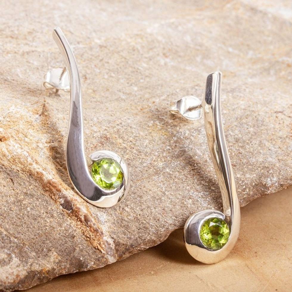 Contemporary Peridot Drop Earrings 'Embrace' Item ID: 2671807942