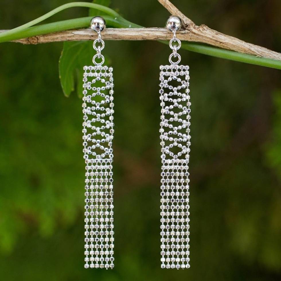 Contemporary Sterling Silver Waterfall Style Earrings 'Mandarin Fringe' Item ID: 2671802090
