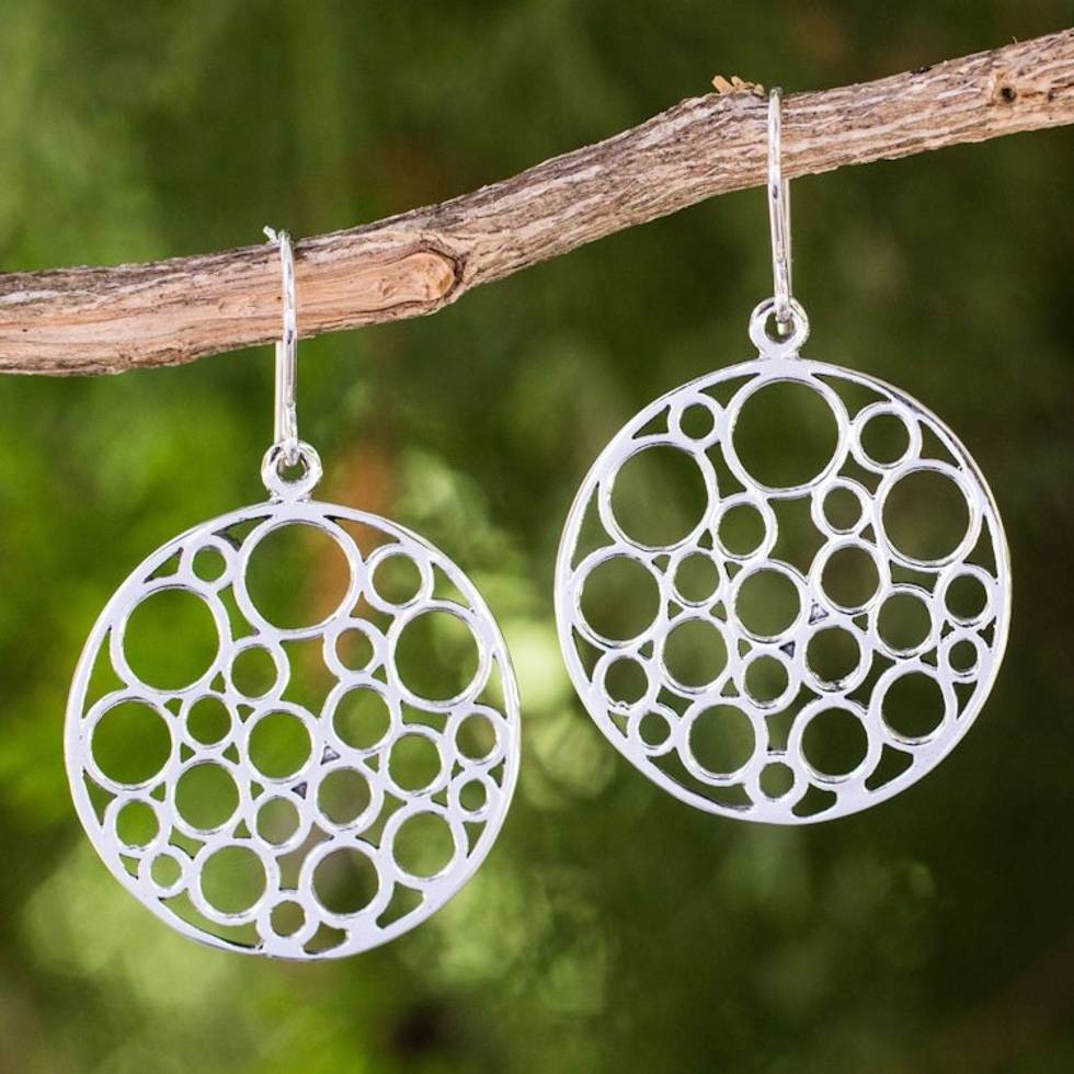 Contemporary Style Round Sterling Silver Dangle Earrings 'Strength in Togetherness' Item ID: 2671802169