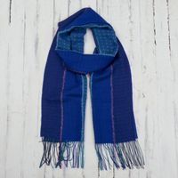 Cool Shades Handwoven Baby Alpaca Blend Scarf from Peru 'Ocean Blues' Item ID: 2670786432