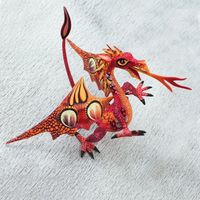 Copal Wood Alebrije Sculpture of Dragon in Red and Orange 'Mexican Dragon in Red' Item ID: 2669898113