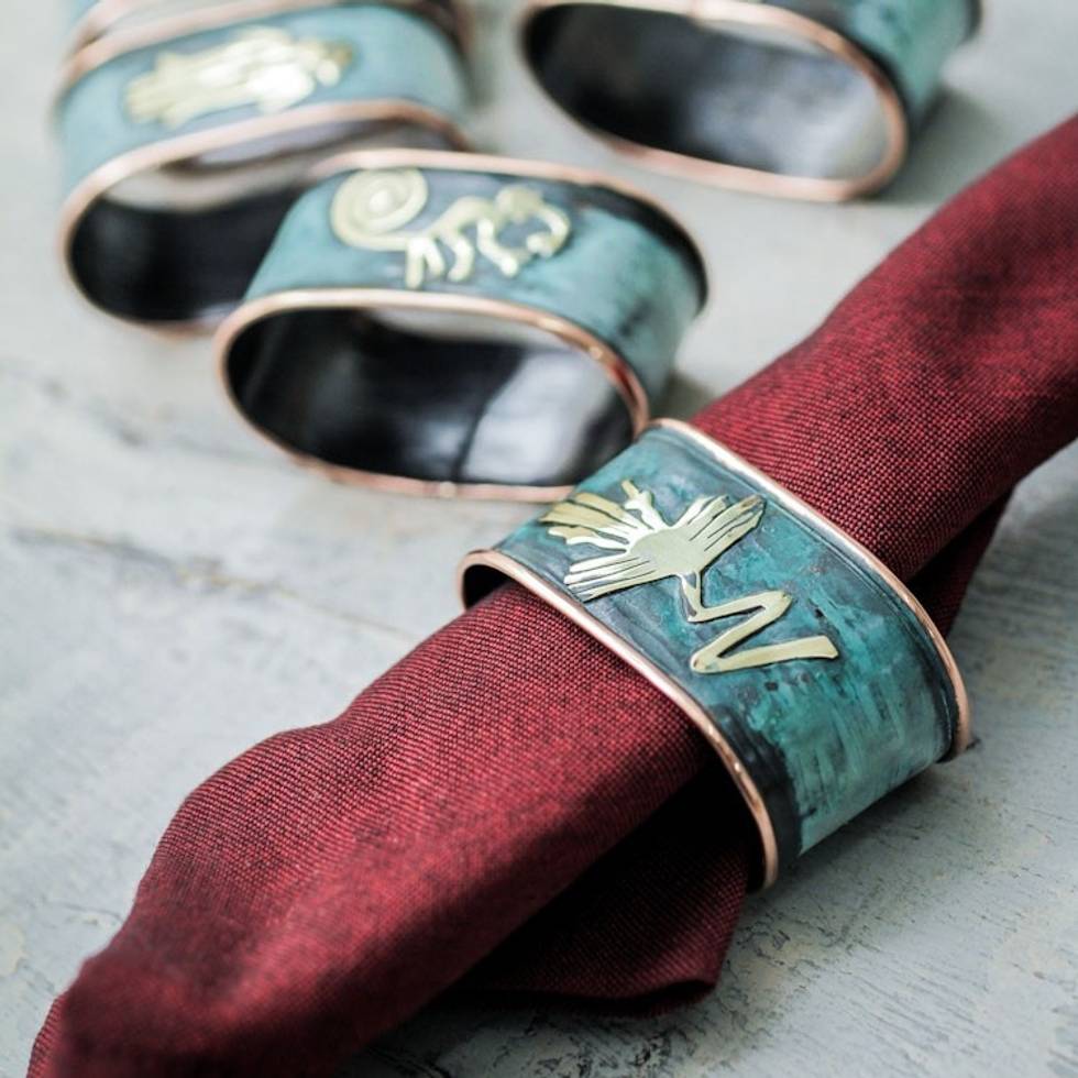 Copper Napkin Rings with Bronze Nazca Images Set of 6 'Nazca Marvels' Item ID: 2669904172
