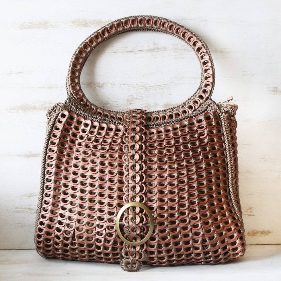 Coppery Crocheted Recycled Soda Pop-Top Handbag 'Coppery Color' Item ID: 2669887544