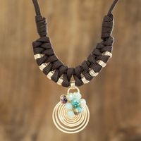 Cord Necklace with Wire and Bead Pendant 'Crystal Spiral' Item ID: 2669933924