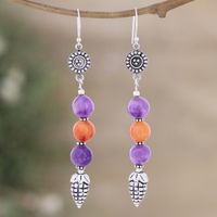 Corn-Themed Dangle Earrings with Carnelian and Amethyst 'Colors of the Fields' Item ID: 2671786563