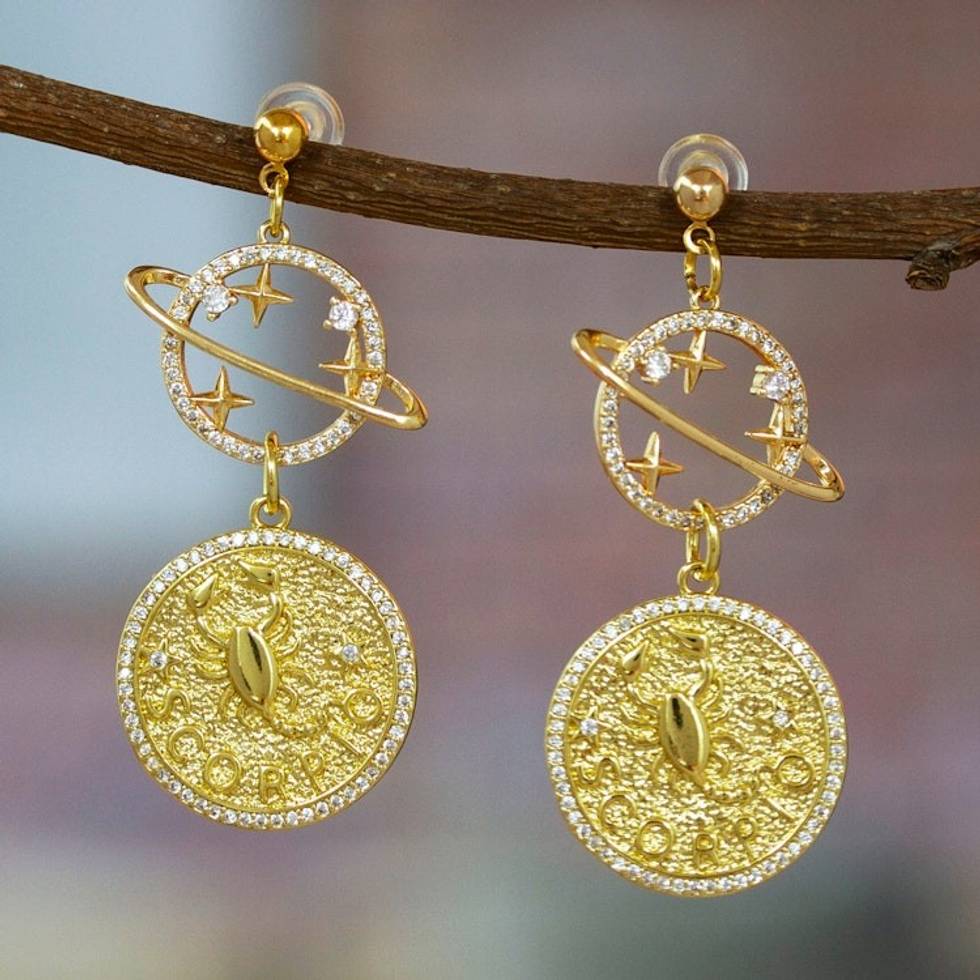 Cosmos-Themed 24k Gold-Plated Brass Scorpio Dangle Earrings 'Scorpio Galaxy' Item ID: 2671807312