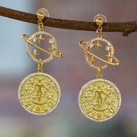 Cosmos-Themed 24k Gold-Plated Brass Virgo Dangle Earrings 'Virgo Galaxy' Item ID: 2671807766