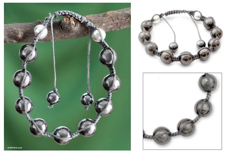 Cotton and Hematite Bracelet Shambhala Meditation Jewelry 'Tranquil Shadows' Item ID: 2671794611