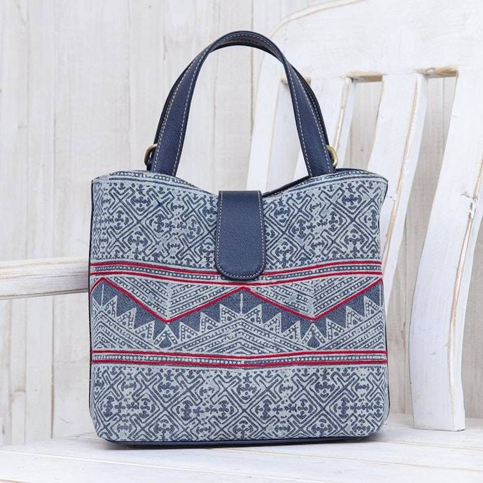Cotton Batik and Faux Leather Shoulder Bag 'Hmong Trek' Item ID: 2676652020