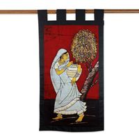Cotton batik wall hanging 'Carrying Water' Item ID: 2671794686