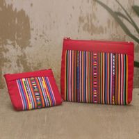 Cotton Blend Cosmetic Bags with Hill Tribe Applique pair 'Lisu Fire' Item ID: 2671803117