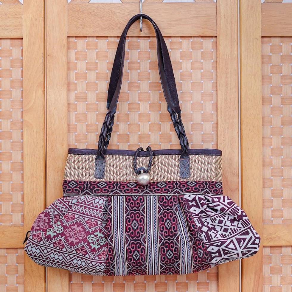 If you're looking for a great bag this is it! It's not only beautiful with the braided leather handles, trim and tassles but I love the fabric exterior! The pattern is really pretty especially for summer and there is so much room in this bag with the 3 large openings, and smaller pockets too, making a perfect bag for vacations and day trips! Comfortable to wear.