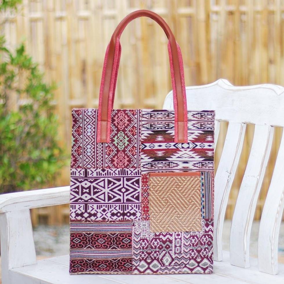 Cotton Blend Patchwork Tote Bag 'Happy Day in Red' Item ID: 2671799681