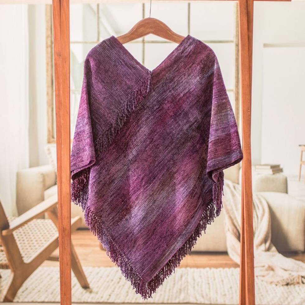 Cotton Blend Poncho in Purple Hues Handwoven in Guatemala 'Primaveral Wine' Item ID: 2671626105