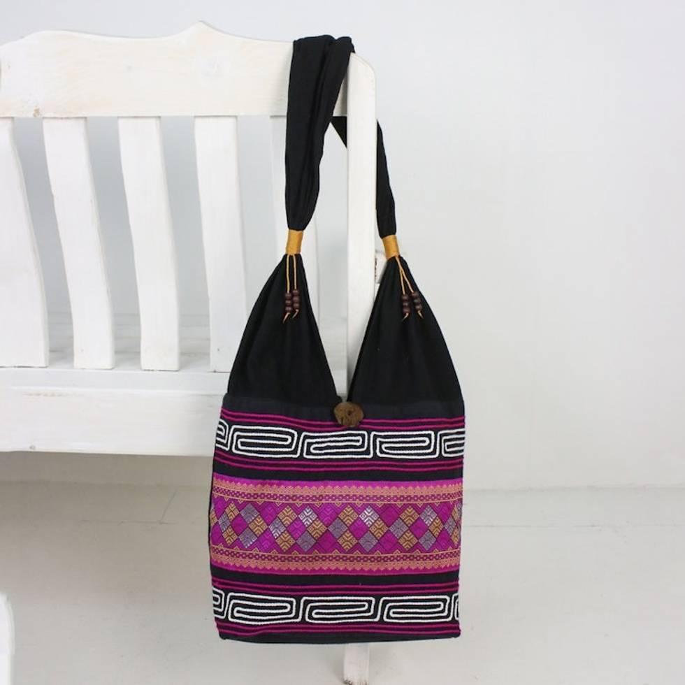 Cotton Blend Shoulder Bag in Pink from Thailand 'Charming Diamonds' Item ID: 2671640870