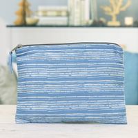 Cotton Cosmetic Bag with Hand-Block Printed Striped Pattern 'Sky Contours' Item ID: 2671787004
