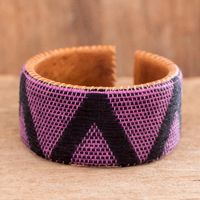 Cotton-Covered Leather Cuff Bracelet 'Comalapa Highlands in Black' Item ID: 2671771841