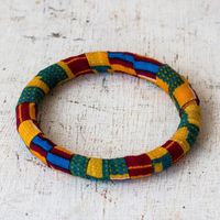 Cotton Kente and Sese Wood Bangle Bracelet from Ghana 'Enchanting Odo' Item ID: 2671805691