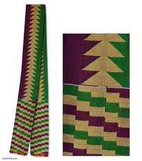 "Myriad arrowheads align within the hypnotic composition of this kente cloth scarf. According to kente lore, purple is associated with earth, with healing, and with the feminine aspects of life. Green and yellow both represent vitality, spirituality and fertility. Deborah Osei Boakye proudly preserves this legendary Ashanti custom as she designs the cotton kente scarf. She names this piece Pia, meaning 'arrow' in the Akan language."