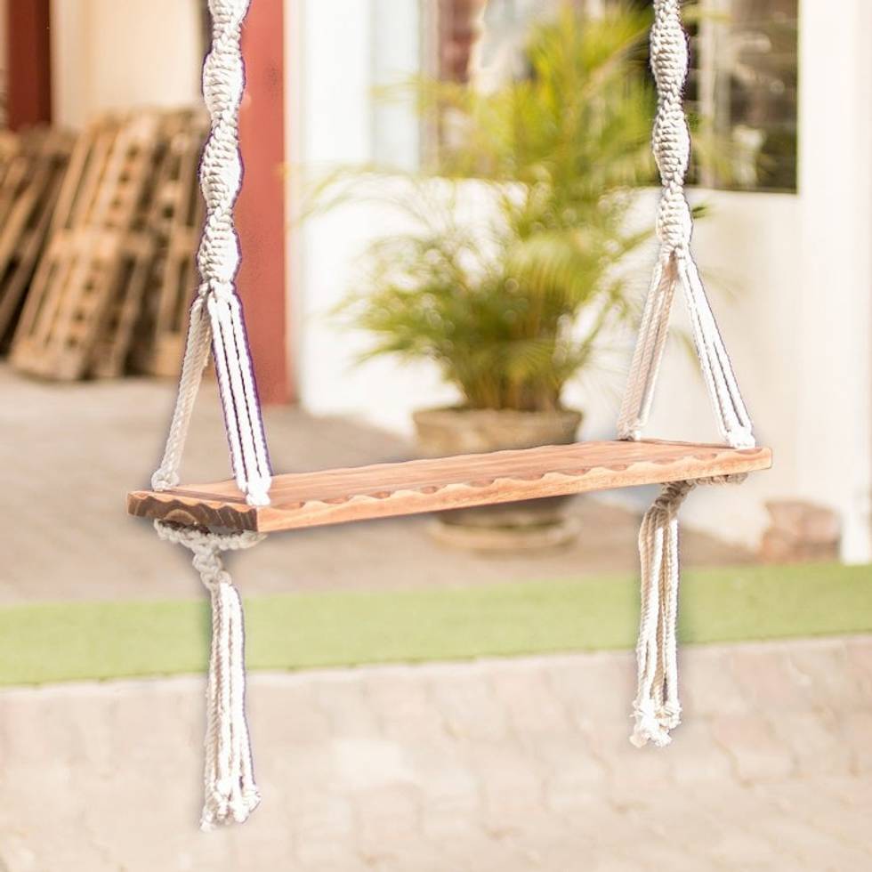 Cotton Macrame and Brown Pine Swing with Brass Hooks 'Caribbean Breeze' Item ID: 2671772077