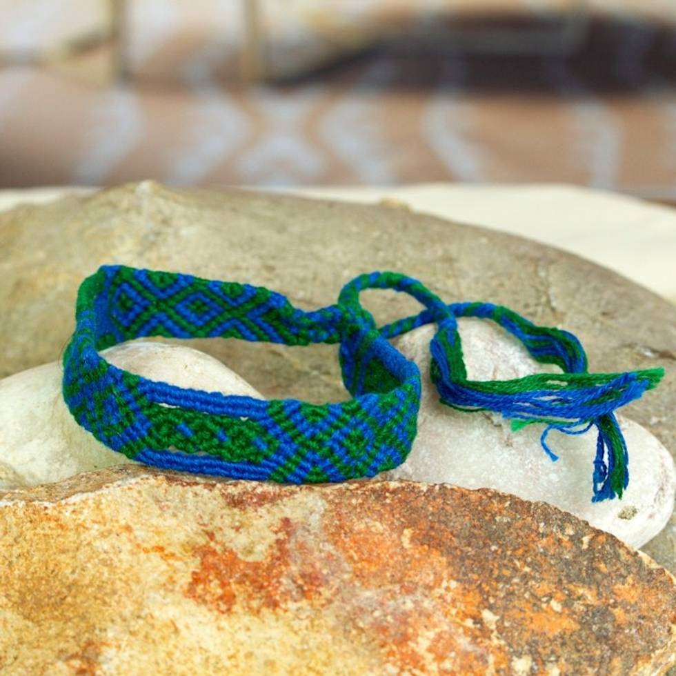 Cotton Macrame Wristband Bracelet in Blue and Green 'Green Geometry' Item ID: 2669932040