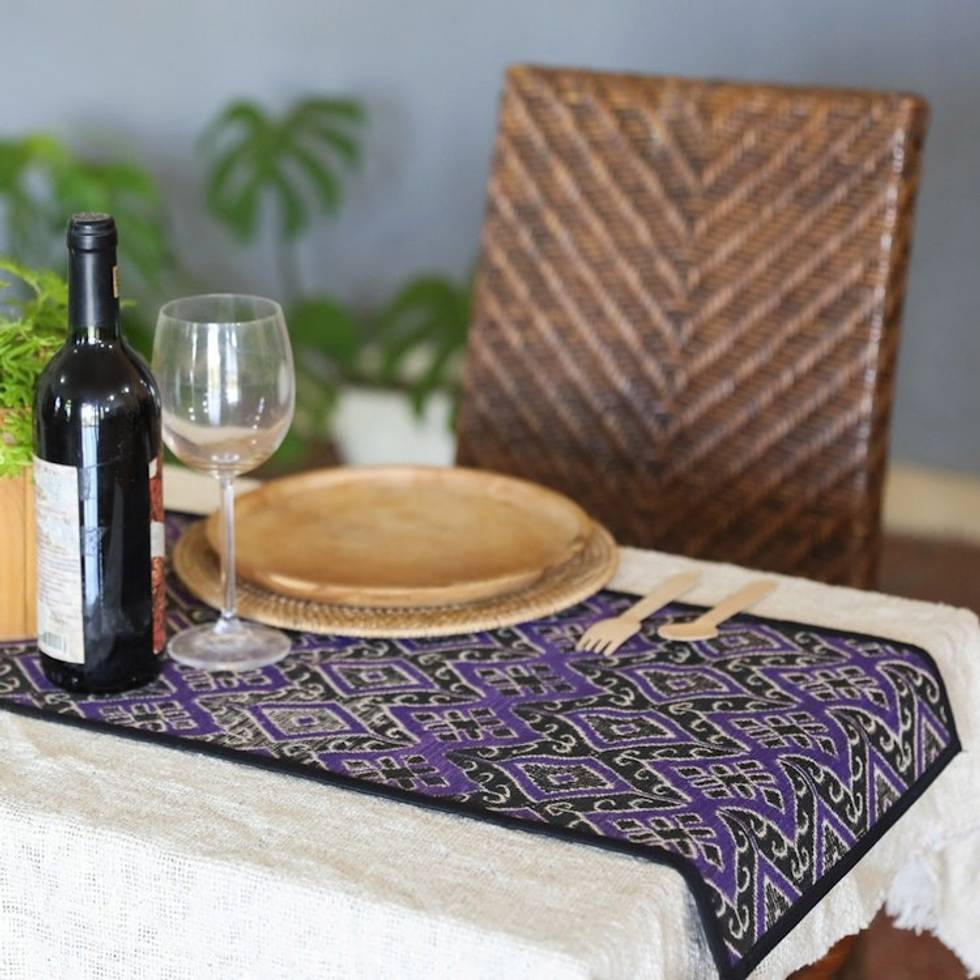 Cotton Natural Fiber 5-Piece Set of Table Runner Placemats 'Purple Diamond' Item ID: 2671765006