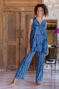 Cotton Pajama Set with Chevron and Boho-Inspired Prints 'Geometric Indigo' Item ID: 2669892352
