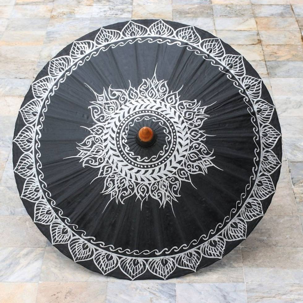 Cotton Parasol with Hand-Painted Designs in Silver 'Charming Thai in Silver' Item ID: 2671798896