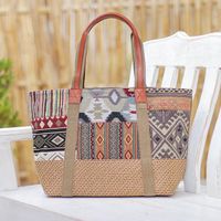 If you're looking for a great bag this is it! It's not only beautiful with the braided leather handles, trim and tassles but I love the fabric exterior! The pattern is really pretty especially for summer and there is so much room in this bag with the 3 large openings, and smaller pockets too, making a perfect bag for vacations and day trips! Comfortable to wear.