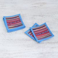 Cotton Patchwork Coasters with Blue Trim Set of 6 'Lahu Blue' Item ID: 2671799077