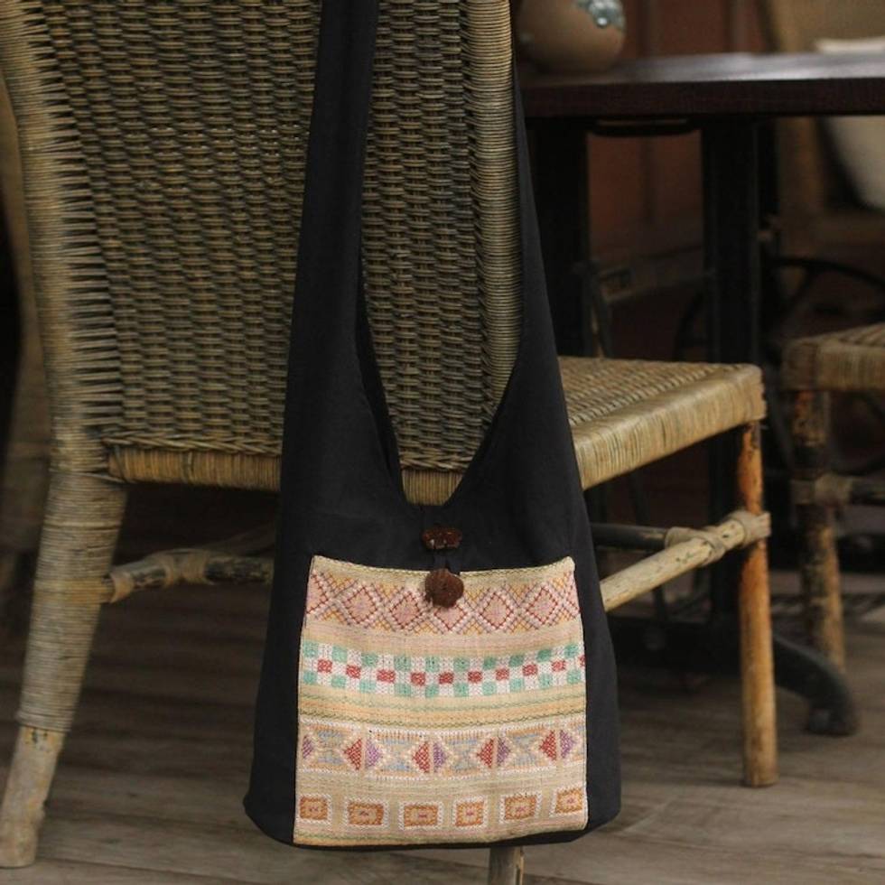 Cotton Patterned Shoulder Bag Handmade in Thailand 'Happy Geometry' Item ID: 2671802649