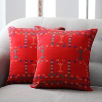 Cotton Red Cushion Covers Set 2 Throw Pillows 'Sequences' Item ID: 2669925417