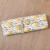 Cotton Roll Pencil Case with Hand-Block Printed Floral Motif 'Glorious Buttercup' Item ID: 2671786503