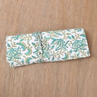 "Crafted from cotton, this roll pencil case is another enchanting creation by Indian artisan Aishwarya Jhawar. Featuring a hand-block printed leafy design, this outstanding accessory comes equipped with a cotton lining that will hold your items gently. In addition, handy ties will secure everything in place."