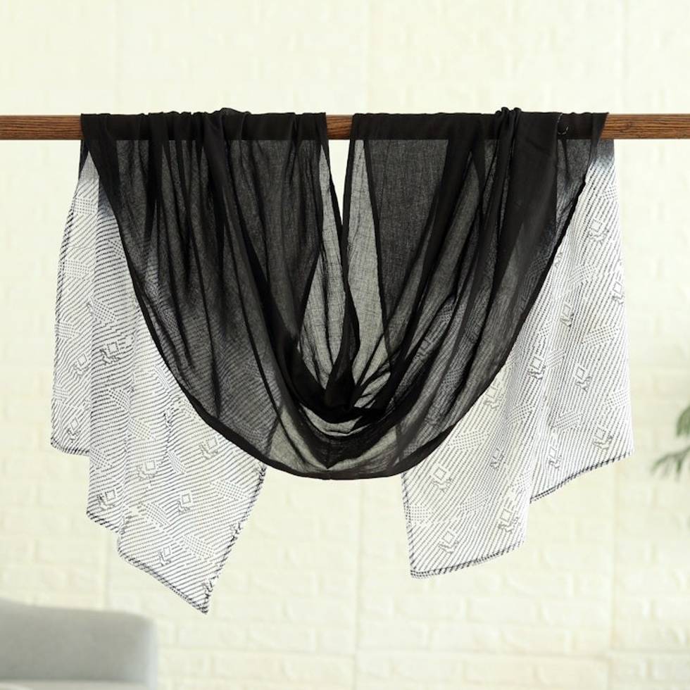 Cotton Scarf with Batik Pattern in Onyx Tones 'Onyx Mystery' Item ID: 2669944157