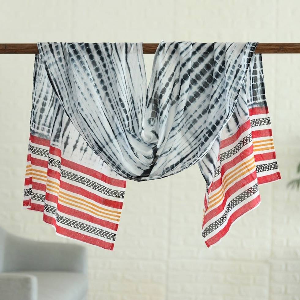 Cotton Scarf with Striped Batik Pattern in Colorful Tones 'Snow White Appeal' Item ID: 2671788970