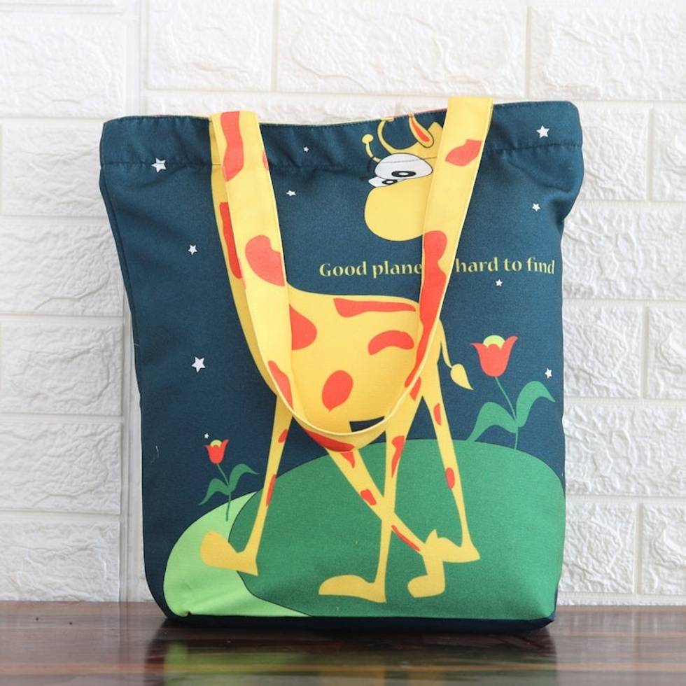 Cotton Tote Bag with Printed Giraffe Motif Made in India 'Life on Planet' Item ID: 2669892340