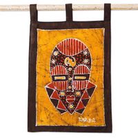 Cotton Wall Hanging of African Mask in a Warm Palette 'Golden Silence' Item ID: 2671805277