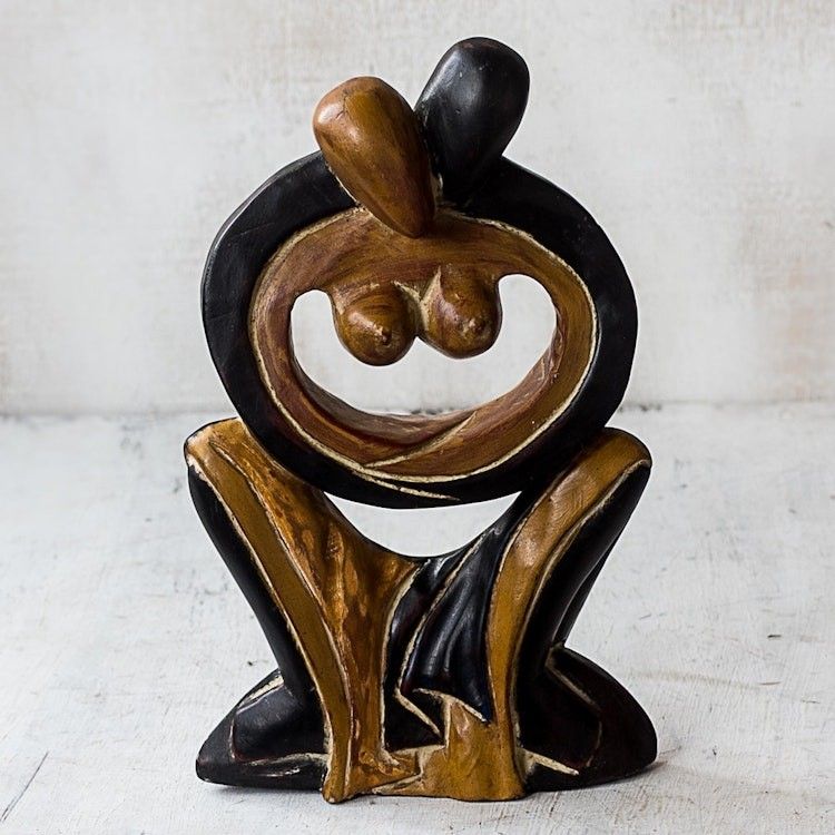 Couple Embracing Black and Brown Hand Carved Wood Statuette 'Maphikelela' Item ID: 2671805743