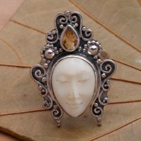 I had purchased a similar ring several years ago from a different source. I was very disappointed in it, and returned it. I have been looking for one ever since, and came upon this one from Buana. I have several of his other pieces, so I decided to take a chance. I am so glad I did!!! This piece is more lovely than the picture depicts. The silverwork is substantial and beautiful, but the face and carving are mesmerizing! When I opened it, I just wanted to sit and stare at it. The features are clean and sharp and the cow bone is so smooth and white. This is a BEAUTIFUL addition to my Buana collection!