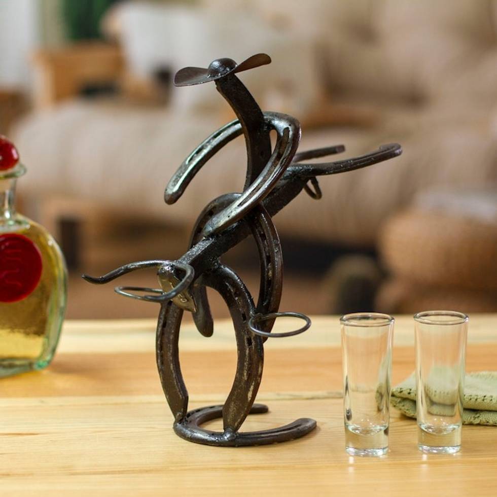 Cowboy Bull Recycled Iron Tequila Glass Stand 2-Piece Set 'Cowboy Toast' Item ID: 2671798783