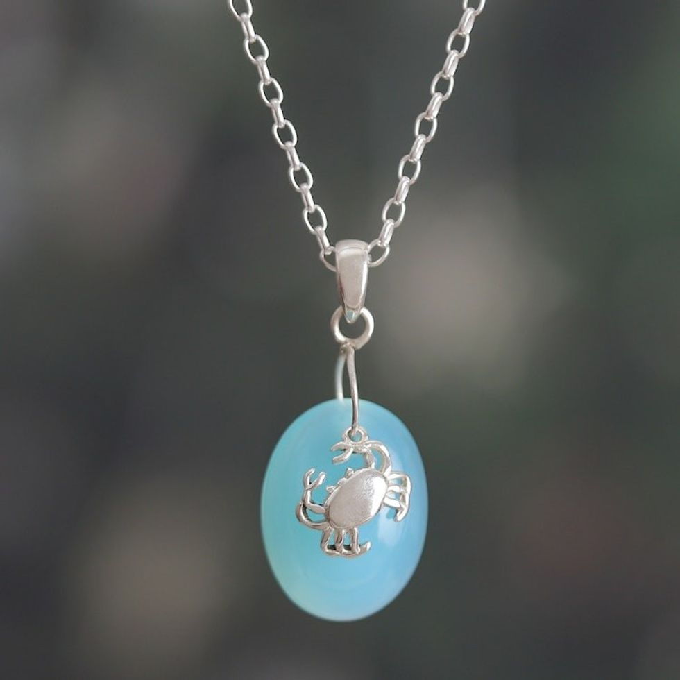 Crab-Themed Chalcedony and Sterling Silver Pendant Necklace 'Harmonious Tides' Item ID: 2671781203