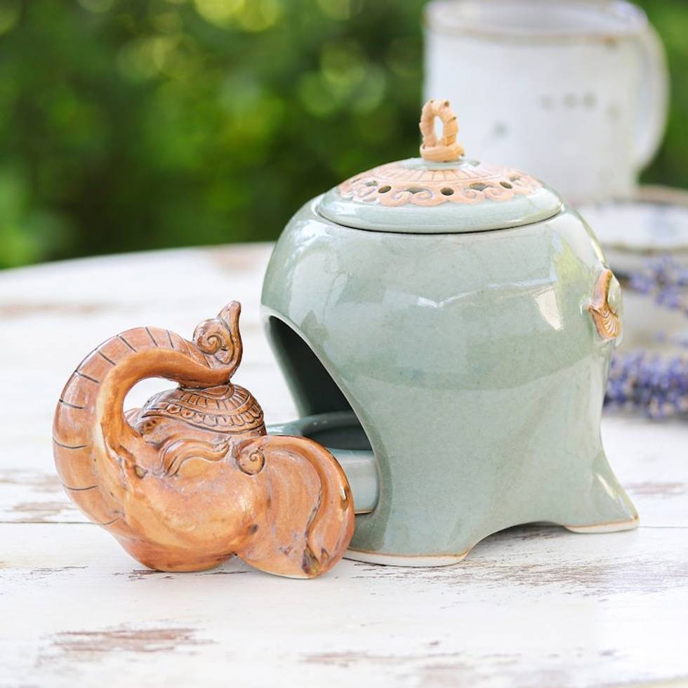 Crackled Elephant-Themed Green Ceramic Oil Warmer 'The Giant's Green Palace' Item ID: 2671797794